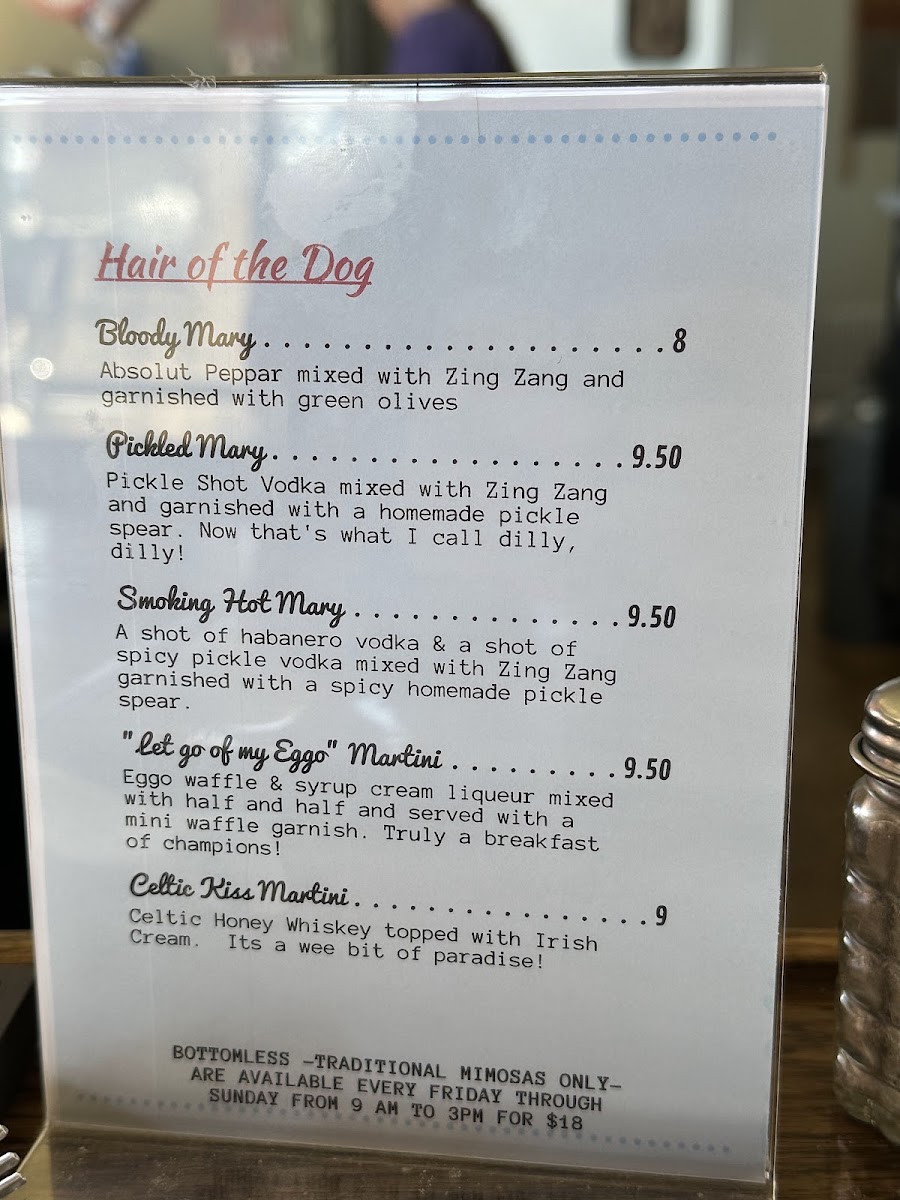 But the adventure doesn't stop there! The brunchables are a hit, particularly the Country Fried Chicken Sliders, where juicy fried chicken sandwiched between fluffy buttermilk biscuits is drizzled with homemade sausage gravy for $13.00. It’s comfort food at its finest. Don't miss the Dream Bowl—a festival of flavors with hashbrowns, scrambled eggs, melted cheddar cheese, sausage gravy, and crispy bacon bits that create a filling breakfast for only $14.00. And if you’re in the mood for a sweet treat, their French Toast, perfectly soaked and griddled in butter, is a must-try for just $7.50.