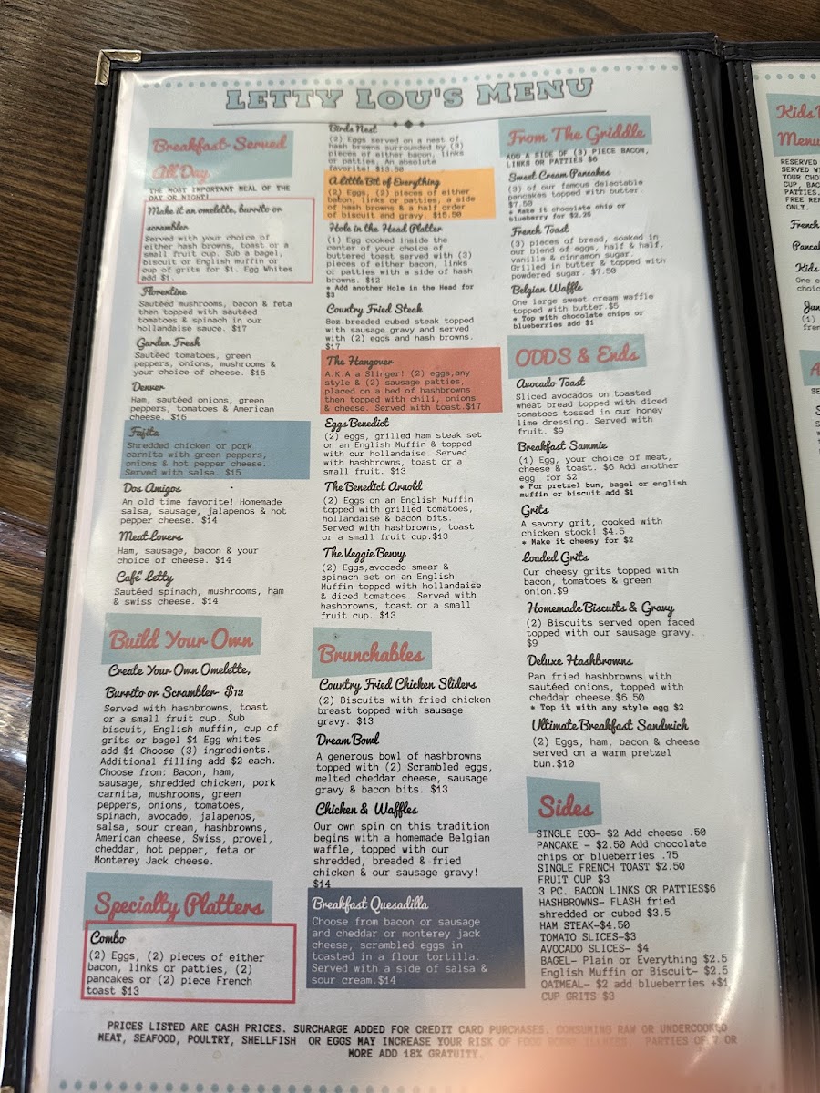 If you find yourself in Wildwood, Missouri, and are craving a delightful breakfast or lunch experience, look no further than Letty Lou's Café & Diner. Nestled at 17209 New College Ave, this charming American restaurant welcomes you with open arms and a menu bursting with comfort food that feels like a warm hug. From the moment you walk in, you can’t help but notice the inviting diner vibe. With its retro tables and vibrant decor, Letty Lou's captures the essence of a classic café, making it the perfect spot to relax and indulge.